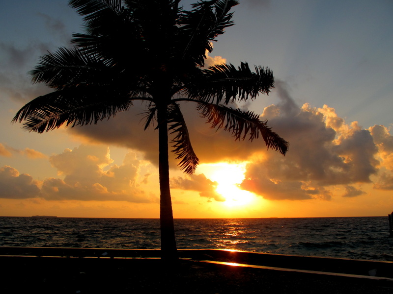 Hoàng hôn Maldives không thể đẹp mỹ mãn như mong đợi vì trời đầy mây. Hôm đó mua tour đi ngắm hoàng hôn và xem cá heo, nhưng về sớm quá nên lại ngắm hoàng hôn trên cầu tàu trong quán cafe.